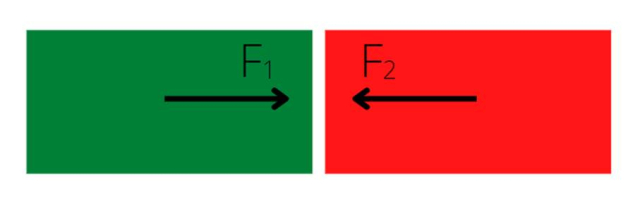 Siły będą działały w tym samym kierunku, lecz będą przeciwnie zwrócone do siebie, gdy się zderzają.