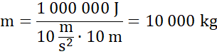 Przekształć wzór na energię potencjalną ciężkości, by otrzymać wyrażenie na masę i podstaw do wzoru wartości liczbowe, by policzyć masę.