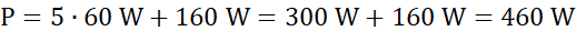, gdzie P to moc w watach, U to napięcie w woltach, I – natężenie prądu w amperach. Łączna moc to zsumowana moc wszystkich urządzeń. Suma natężeń prądu to łączna moc podzielona przez stałe napięcie.