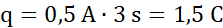 Ładunek przepływający przez przekrój poprzeczny przewodnika q (C) | Czas przepływu ładunku t (s) | Natężenie prądu płynącego w przewodniku I (A) |