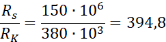 Z powodu, że Słońce i Księżyc mają taką samą wielkość patrząc z Ziemi, można porównać ich odległości od Ziemi. (podobieństwo)