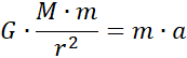 G – stała grawitacji, M, m – masy ciał, r – odległość między środkami masy ciał