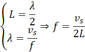 Do rozwiązania tego zadania należy przystąpić, wyciągając wnioski z treści – długość struny to długość fali podzielona na pół, a sama długość fali jest jej prędkością w strunie, podzielona przez jej częstotliwość. Z tak obranego układu równań wyznaczamy częstotliwość, eliminując z równania długość fali (metoda podstawiania).
