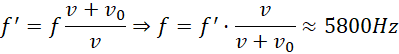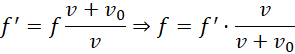 W tym przypadku to źródło dźwięku nie porusza się, lecz odbiorca dźwięku ma prędkość. Z definicyjnego wzoru określającego efekt Dopplera otrzymujemy wzór: