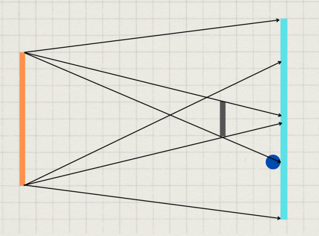 Kiedy odsuniemy przedmiot, to zmniejszy się obszar półcienia, ale pojawi się cień.