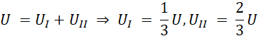 Następnie korzystam z inwariantności natężenia w szeregowym połączeniu, celem wyprowadzenia zależności między napięciami: