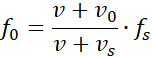 v – prędkość dźwięku, v0 – prędkość obserwatora, vs – prędkość źródła dźwięku, fs – częstotliwość dźwięku źródłowego