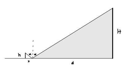 Justyna może się oddalić do tylko tak daleko, żeby ona i drzewo wciąż tworzyli trójkąty.