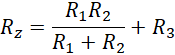 W pierwszym kroku należy policzyć opór zastępczy całego obwodu, wiedząc, że oporniki 1 i 2 są do siebie równoległe, natomiast ich układ jest szeregowy do opornika 3: