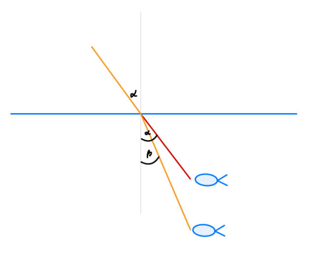 Przy przejściu przez inny ośrodek dochodzi do załamania światła i przez to wydaje się, że przedmiot jest w innym miejscu.