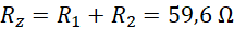 W pierwszym kroku należy policzyć opór zastępczy całego obwodu, wiedząc, że oporniki ustawione są do siebie szeregowo: