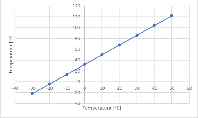 Musisz wybrać temperatury w stopniach Celsjusza (np. co 10 stopni) i podstawić je do wzoru, żeby zamienić je na stopnie Fahrenheita. Następnie narysować wykres z punktów.