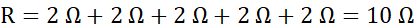 Oblicz opór elektryczny pięciu oporników dwuomowych połączonych szeregowo.