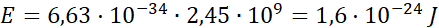 f – częstotliwość, h – stała Plancka, h = 6,63 · 10-34 Js = 4,14 · 10-15 eVs
