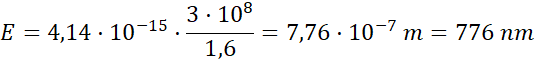 f – częstotliwość, h – stała Plancka, h = 6,63 · 10-34 Js = 4,14 · 10-15 eVs