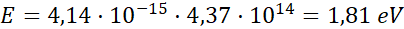 f – częstotliwość, h – stała Plancka, h = 6,63 · 10-34 Js = 4,14 · 10-15 eVs