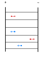 Ładunki dodatnie są przyciągane przez stronę ujemną i odpychane przez dodatnią.