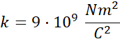 k – stała elektrostatyczna, Q, q – ładunki, r – odległość między ładunkami