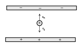 Ładunek jest nieruchomy, to znaczy, że działające na niego siły się równoważą.