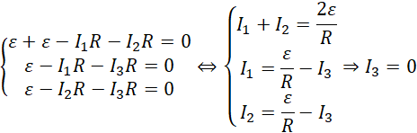 Ze względu na II prawo Kirchhoffa rozpatrujemy układ ze względu na trzy oczka: