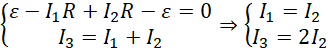 Z I oraz II prawa Kirchhoffa otrzymujemy układ równań: