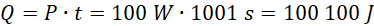 . Grzałka pracowała przez 1001 sekund. Ciepło dostarczone w tym czasie: