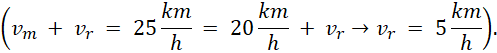 Dlatego w wypadku, gdy łódka płynie w górę rzeki nurt będzie ją spowalniał. Prędkość łódki płynącej w górę rzeki wyniesie: