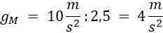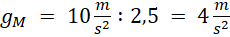 Na Ziemi wartość przyspieszenia ziemskiego wynosi , na Marsie ta wartość jest 2,5 razy mniejsza, czyli wyniesie: .