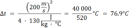 Pocisk rozgrzeje się o 76,9°C.