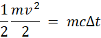 Masa w powyższym równaniu się skróci, ponieważ występuje po obu stronach równania. Możesz więc wyznaczyć zależność określającą o ile zmieni się temperatura pocisku.
