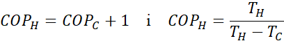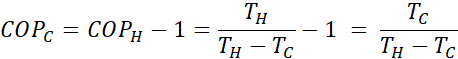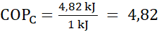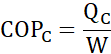 Gdy pompa ciepła pracuje w trybie chłodzenia, jej współczynnik chłodzenia, jej współczynnik chłodzenia COPC obliczamy ze wzoru: