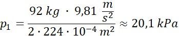 Zauważamy, że powierzchnia, jaką turysta oddziałuje na podłoże, jest równa podwojonej powierzchni jednego buta, a siła nacisku, jaką wywiera, jest równa sile ciężkości. Korzystamy ze wzoru na ciśnienie.