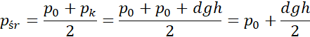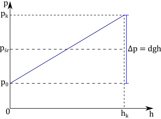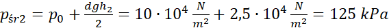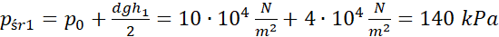Ponieważ zależność jest liniowa, więc wartość średnią możemy policzyć jako średnią arytmetyczną ciśnienia na powierzchni i na dnie: