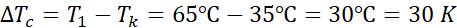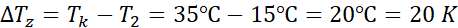 Różnica temperatur w stopniach Celsjusza jest taka sama jak w kelwinach, czyli po podstawieniu danych liczbowych z treści zadania otrzymujemy:
