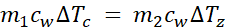 Aby określić, w jakich proporcjach należy nalać wodę, musimy ustalić iloraz masy wody ciepłej i zimnej. Wiemy, że ilość ciepła potrzebna do zmiany temperatury ciała o