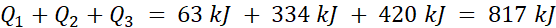 Zgodnie z etapami wypisanymi w punkcie a) zadania całkowita ilość ciepła potrzebna do ogrzania lodu do temperatury wrzenia to: