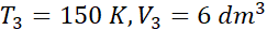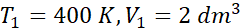 Wartość temperatury i objętości dla punktów (1) i (3) odczytujemy z wykresu: