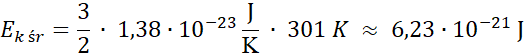 Odpowiedź: Średnia energia kinetyczna ruchu postępowego cząsteczki dwutlenku węgla w temperaturze TC = 28oC wynosi ok.