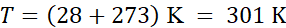 Temperaturę TC = 28oC wyrażamy w skali Kelwina zgodnie z zależnością