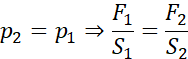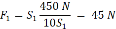 Z tej zależności obliczamy siłę, jaką działamy na mniejszy tłok:
