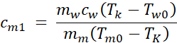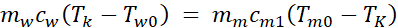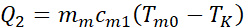 2. ciepło jest oddawane przez kawałek miedzi o temperaturze początkowej Tm0 = 100oC: