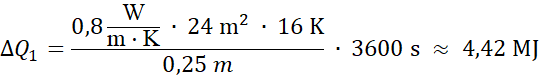 W tym zadaniu oblicz utratę ciepła przez ścianę o powierzchni S = 24 m2, grubości