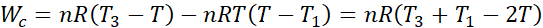 Widzimy, że aby wyznaczyć pracę, musimy znać temperaturę gazu T. Wiemy, że w stanach (2) i (4) temperatura jest taka sama. Układamy równania dla przemian izochorycznych: