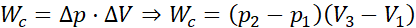 Praca użyteczna Wc cyklu termodynamicznego jest równa polu figury wewnątrz cyklu w układzie współrzędnych (V, p):