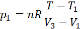 Powyższe równania wykorzystujemy do wyznaczenia brakujących wartości ciśnienia we wzorze na pracę. Odejmujemy stronami równanie (4) od równania (1) i wyznaczamy p1: