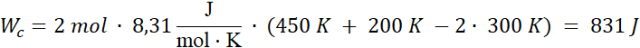 Po podstawieniu powyższych wyrażeń na ciśnienia do równania na pracę (objętości się skracają) otrzymujemy: