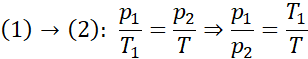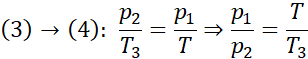 Z równania Clapeyrona możemy ułożyć zależności dla poszczególnych stanów termodynamicznych, od (1) do (4):