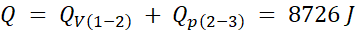 Całkowite ciepło pobrane przez gaz jest równe: