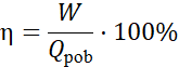 gdzie: W – praca użyteczna, obliczona w punkcie b), Qpob – ciepło pobrane przez gaz, obliczone w punkcie c).