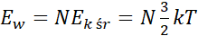 Z założenia przyjętego w zadaniu wynika, że energia wewnętrzna gazu w butli jest sumą energii kinetycznych ruchu postępowego wszystkich znajdujących się w niej cząsteczek. Dla każdej cząsteczki gazu możemy obliczyć jej średnią energię kinetyczną ruchu postępowego, która wyraża się wzorem: